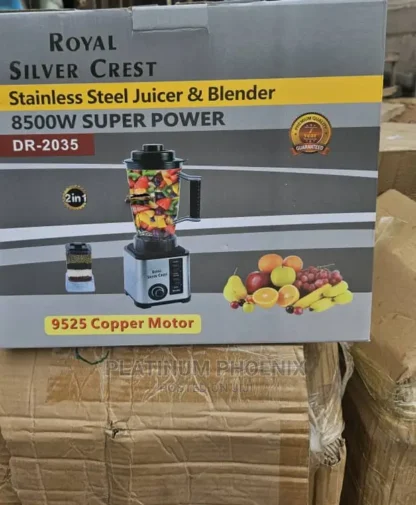 R0yal Silver Crest blender 8500W With 2 Jar is suitable for hard foods and crush even ice block. it is specially made for food smoothening and has the ability to crush the seed of tomatoes to fine paste. it can be used for nuts, beans, maize, tomatoes, pepper.